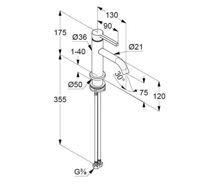 Высота излива, мм