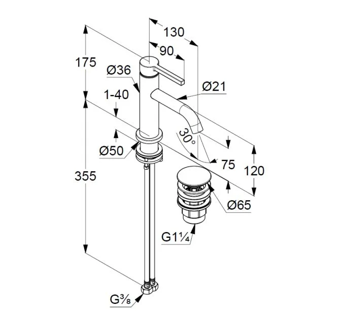 Высота излива, мм