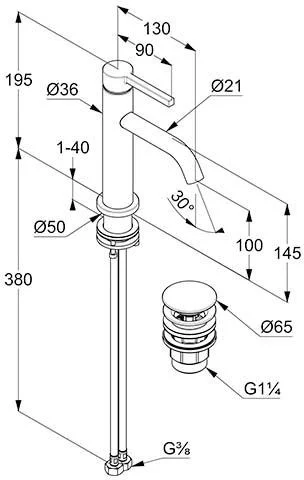 Высота излива, мм