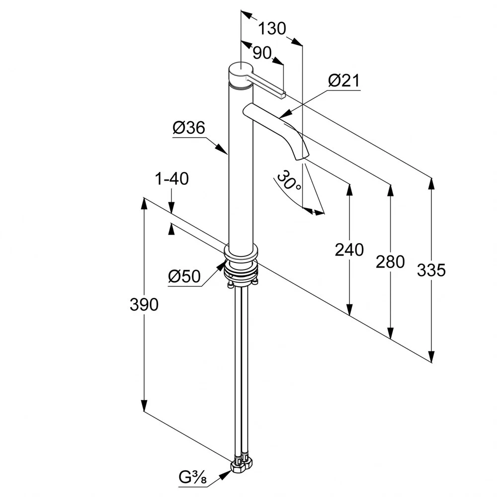 Высота излива, мм