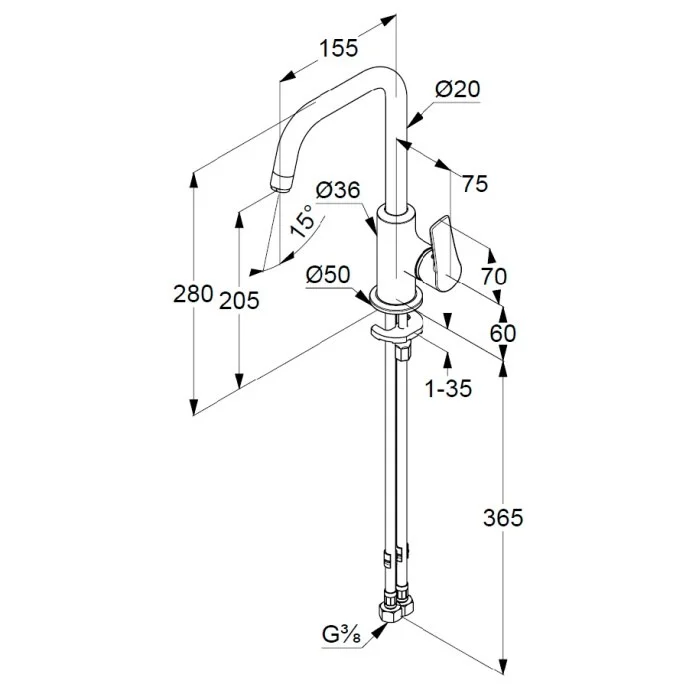 - однорычажный смеситель на умывальник DN 15