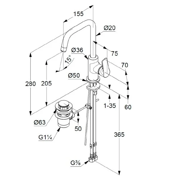 - донный клапан G 1 1/4