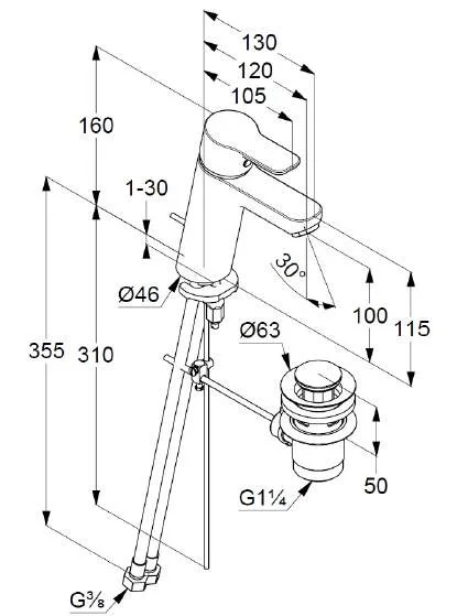 - гибкая подводка G 3/8