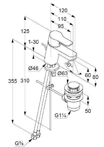- гибкая подводка G 3/8