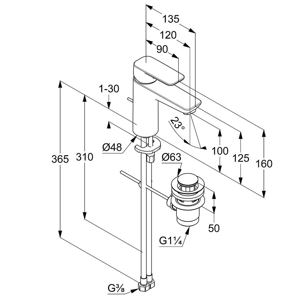Высота излива, мм