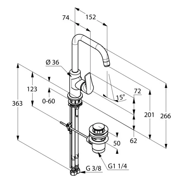 Смеситель для раковины Kludi Tercio с донным клапаном.