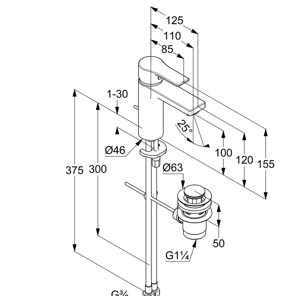 Высота излива, мм