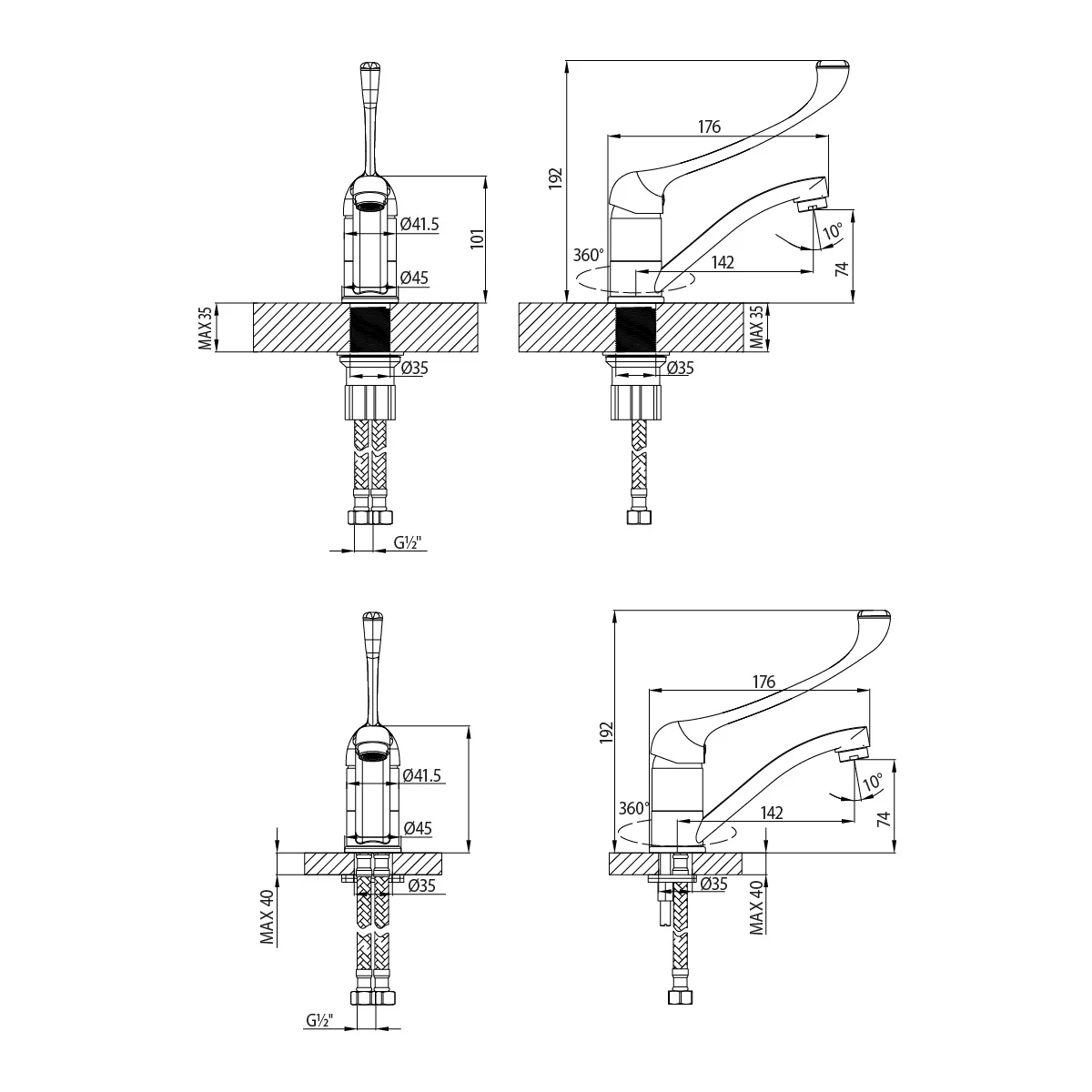 Высота излива, мм