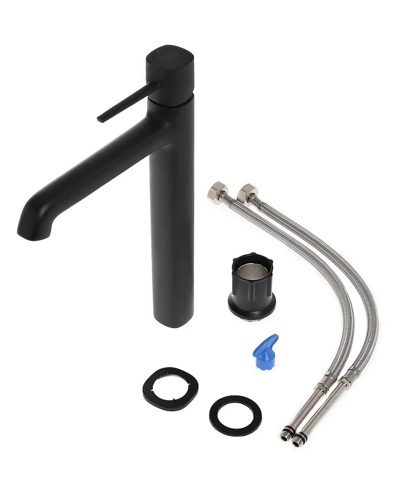 Смеситель для раковины с фиксированным изливом Orange Karl. Минималистический дизайн и тщательно продуманная функциональность объединены в смесителях коллекции Karl. Высокая модель предназначена для использования с накладными раковинами. Изготовлен из латуни и не подвержен коррозии от постоянного контакта с водой. Фирменный картридж Orange делает лёгким управление напором и температурой воды. Покрытие в цвете матовый черный, за которым очень просто ухаживать мягкой салфеткой, получено методом порошковой окраски с многоступенчатой системой подготовки и высокотемпературной обработкой. Аэратор экономит воду и, обогащая струю воздухом, делает её мягкой, без брызг.