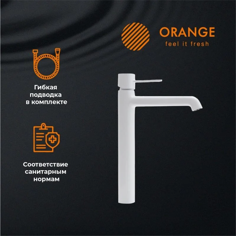 Смеситель для раковины с фиксированным изливом Orange Karl. Минималистический дизайн и тщательно продуманная функциональность объединены в смесителях коллекции Karl. Высокая модель предназначена для использования с накладными раковинами. Изготовлен из латуни и не подвержен коррозии от постоянного контакта с водой. Фирменный картридж Orange делает лёгким управление напором и температурой воды. Покрытие в цвете глянцевый белый, за которым очень просто ухаживать мягкой салфеткой, получено методом порошковой окраски с многоступенчатой системой подготовки и высокотемпературной обработкой. Аэратор экономит воду и, обогащая струю воздухом, делает её мягкой, без брызг.