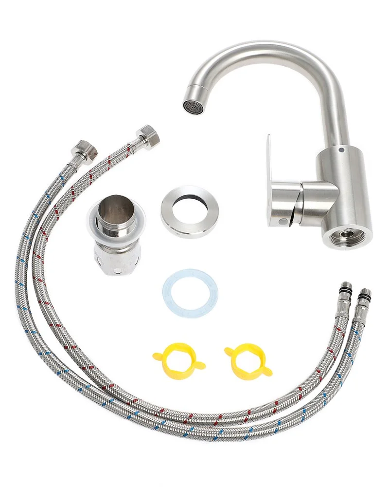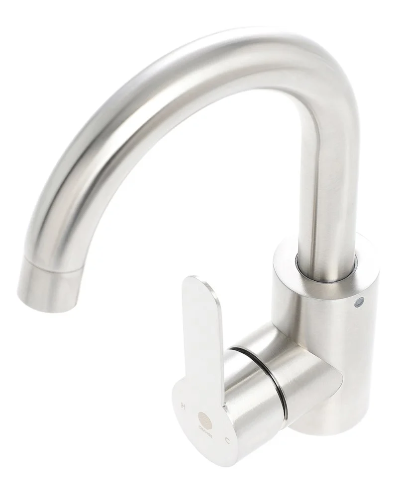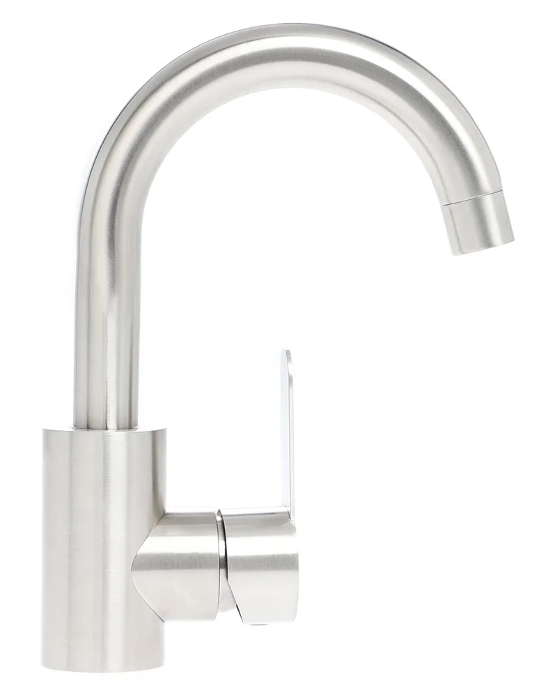 Смеситель для раковины с поворотным изливом Orange Steel идеально впишется как в современный, так и в традиционный интерьер. Изготовлен из латуни и не подвержен коррозии от постоянного контакта с водой. Фирменный картридж Orange делает лёгким управление напором и температурой воды. Покрытие в цвете матовый никель, за которым очень просто ухаживать мягкой салфеткой, нанесено методом вакуумного напыления. Аэратор экономит воду и, обогащая струю воздухом, делает её мягкой, без брызг.