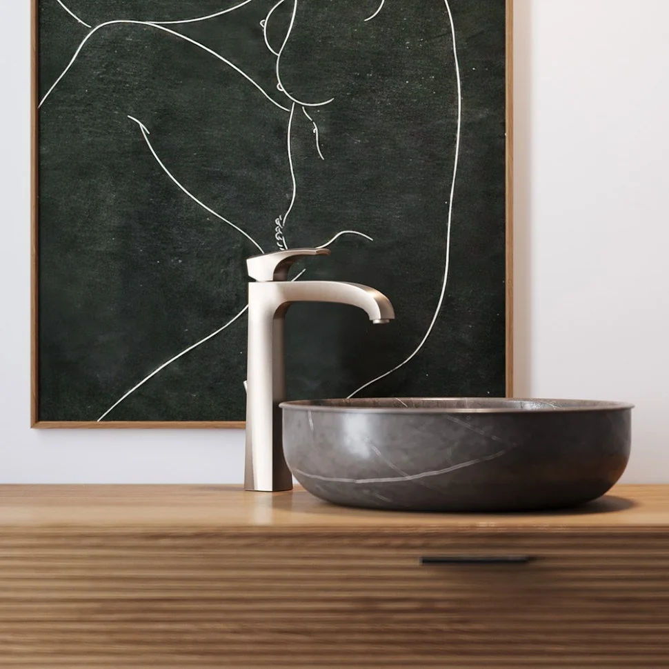 - Встраиваемый монтаж скрывает все соединения и оставляет на виду только рычаг управления и излив, что добавляет в интерьер дизайнерский акцент, экономя пространство.