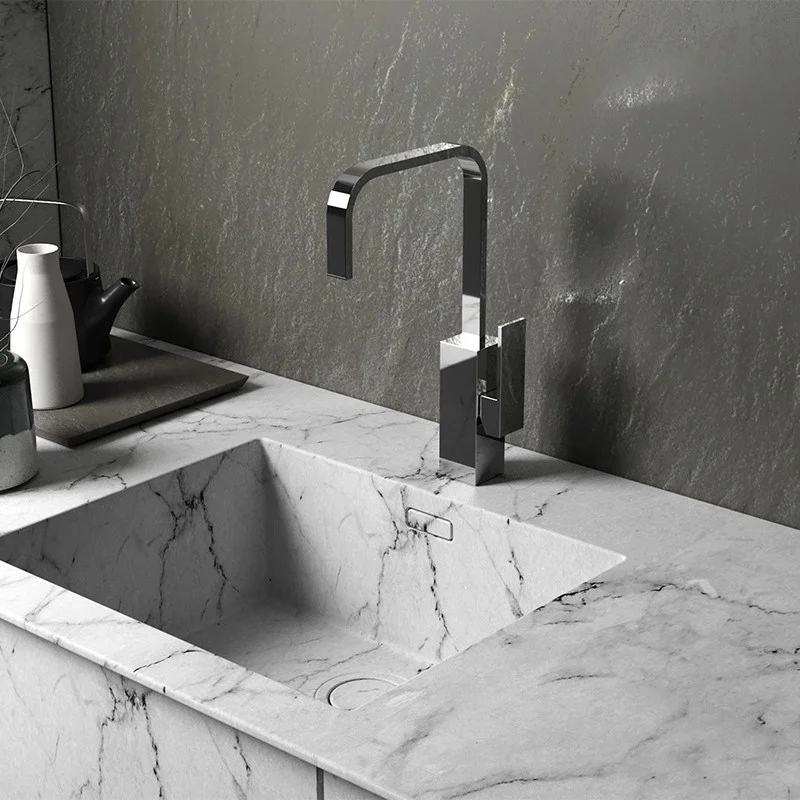 - Встраиваемый монтаж скрывает все соединения и оставляет на виду только рычаг управления и излив, экономя пространство.