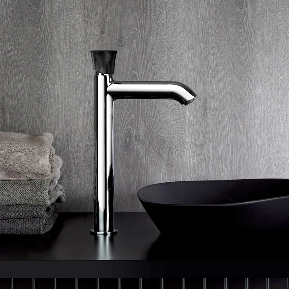 • Увеличенная высота корпуса смесителя позволяет использовать его с накладными раковинами и раковинами-чашами.