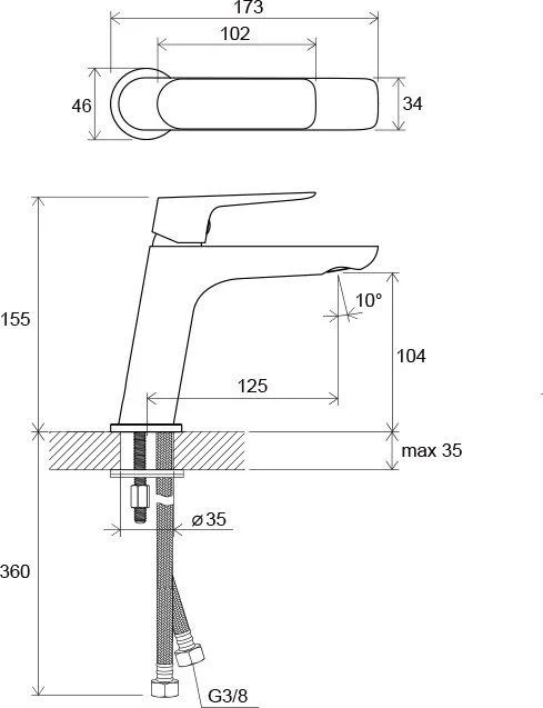 высота смесителя: 155 мм
