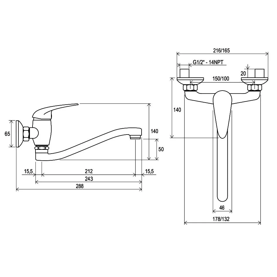 межосевой размер смесителя : 100 мм - подходит для реконструируемых квартир