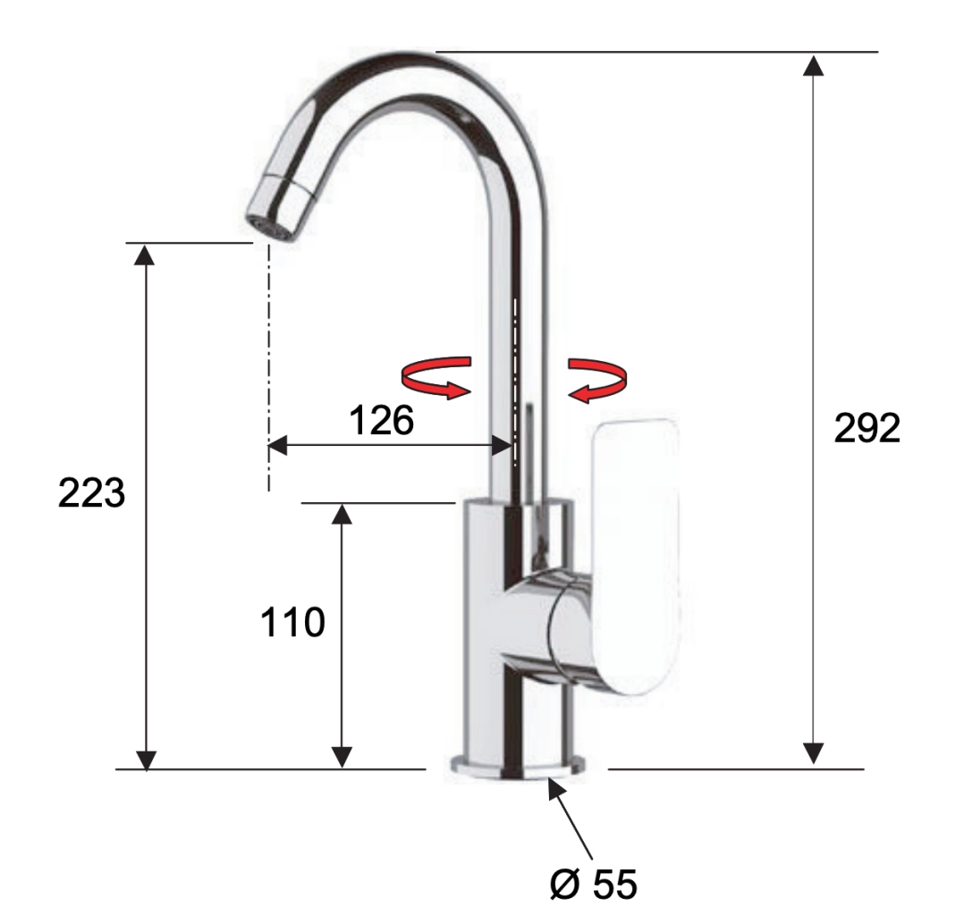 Высота излива, мм