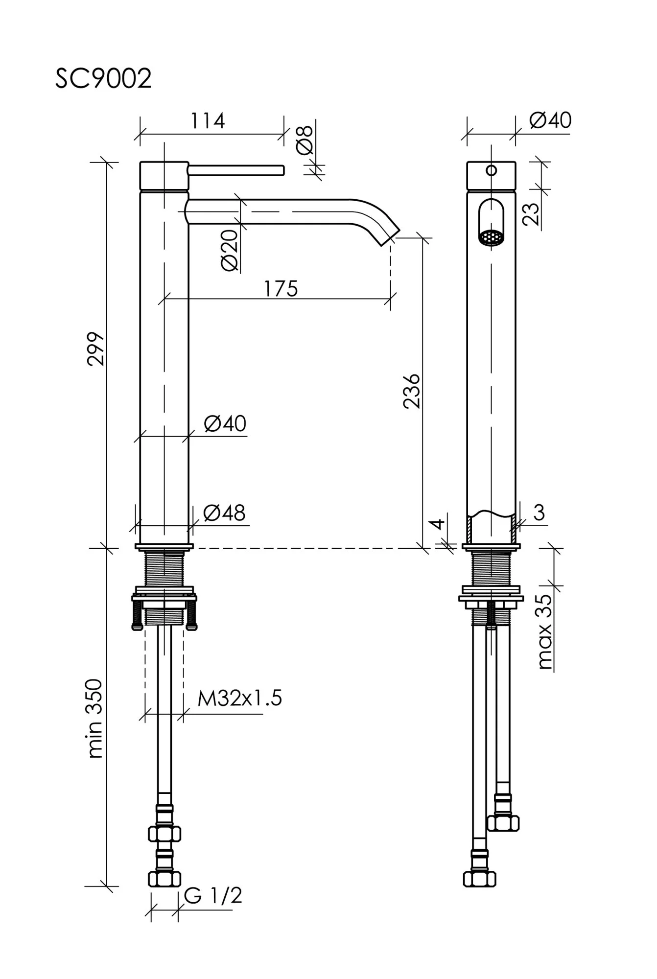Высота излива, мм