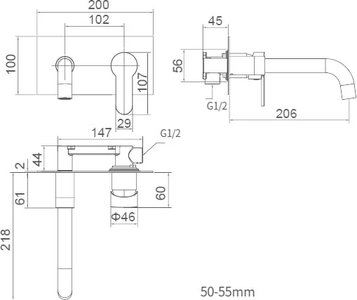 Длина излива, мм