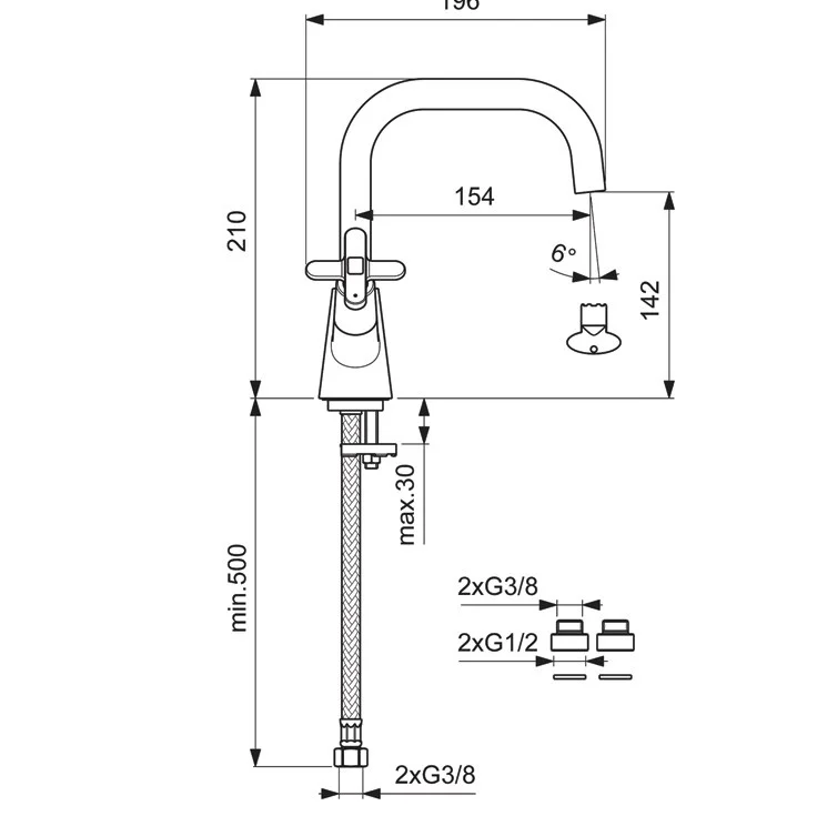 - Длина излива, мм: 154