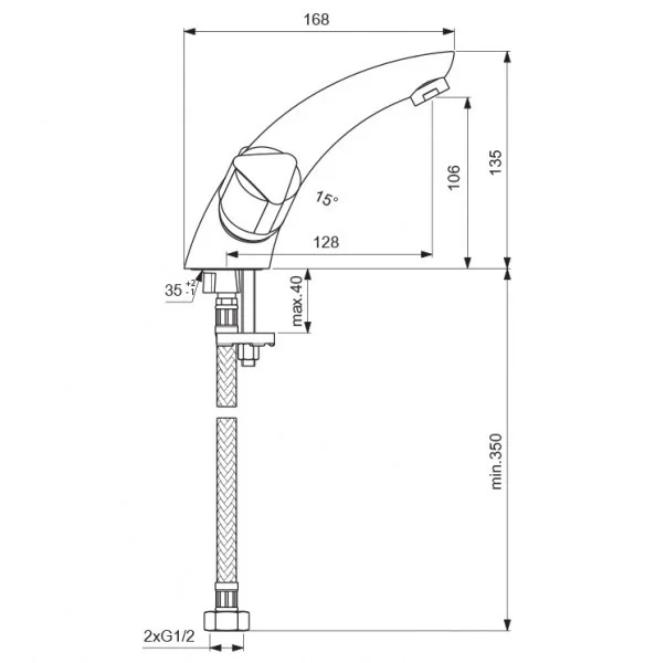 - Длина смесителя: 168 мм