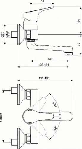 - Длина излива, мм: 130