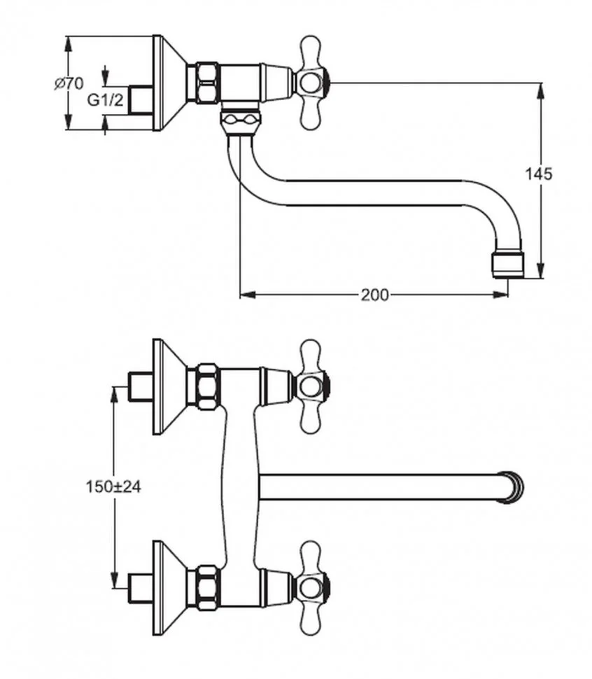 Смеситель Vidima РЕТРО (Retro) BA122AA для раковины, настенный, поворотный излив, хром