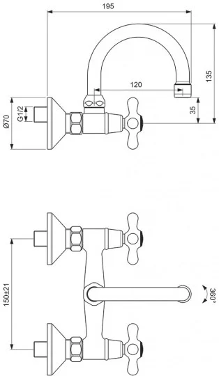 Смеситель Vidima РЕТРО (Retro) BA123AA для раковины, настенный, поворотный излив, хром