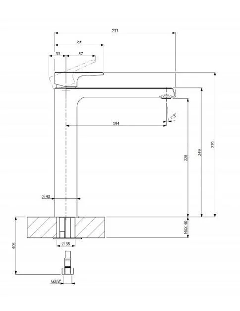 Смеситель для раковины однорычажный. Высокий с удлиненным изливом. Материал: Латунь. Картридж керамический. Напор 4,7 l/min.