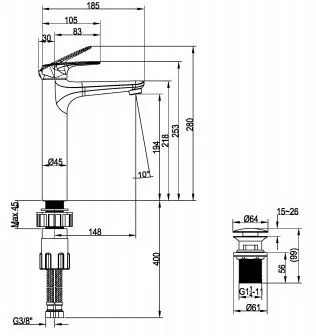 Высокий смеситель для раковины однорычажный. Материал: Латунь. Напор 4,6 л/мин.