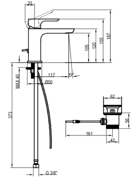 Смеситель для раковины однорычажный. Материал: Латунь. Напор 4,6 л/мин.