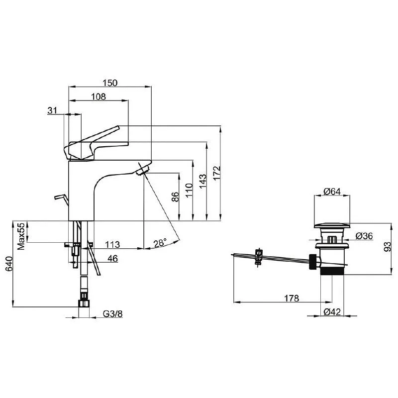 Однорычажный смеситель для раковины. Материал: Латунь. Картридж керамический. Напор 5 л/мин