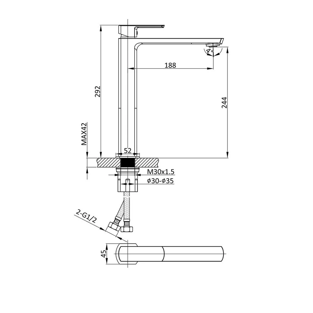 Высота излива, мм