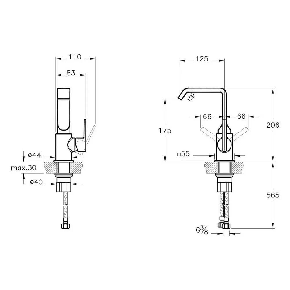 Высота излива, мм