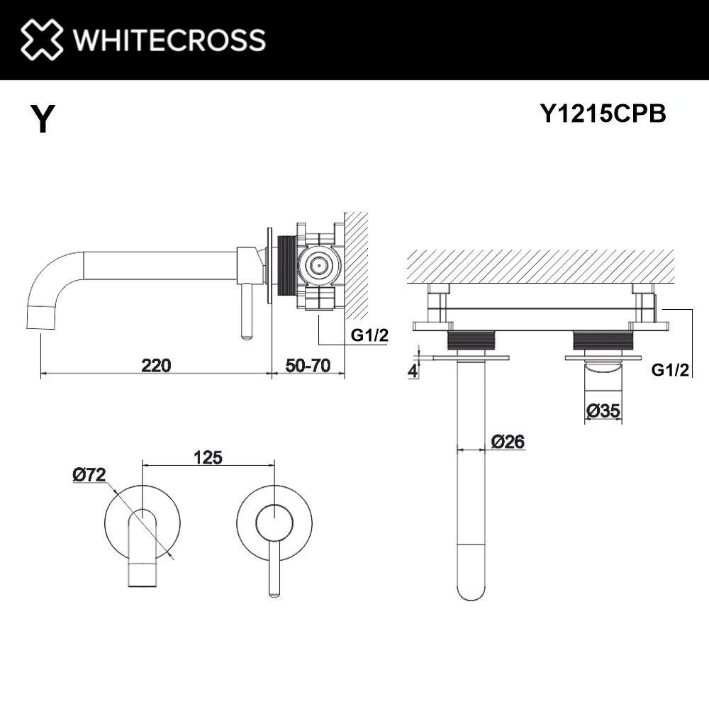 Смеситель для раковины WHITECROSS Y Y1215CPB скрытого монтажа, брашированная медь