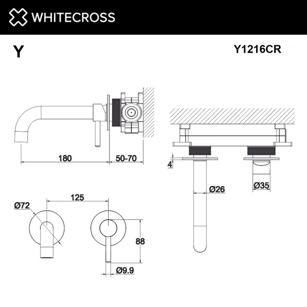 Смеситель для раковины WHITECROSS Y Y1216CR скрытого монтажа хром