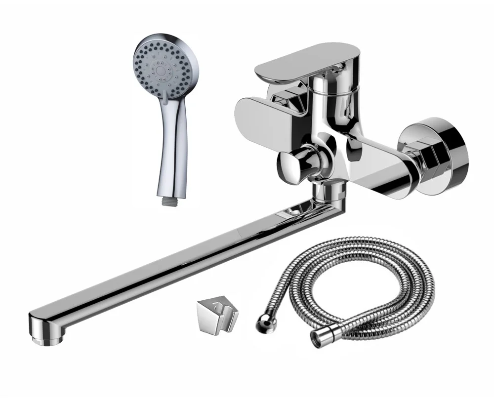 Смеситель для ванны/душа с универсальным изливом и душевым набором Agger Gorgeous A0221100 украсит современный интерьер ванной комнаты. Корпус выполнен из высококачественной латуни, не подверженной коррозии от длительного контакта с водой. Фирменный картридж Agger делает лёгким управление напором и температурой воды, а керамический дивертор переключит её направление с излива на душ даже при низком давлении. Хромированное покрытие, за которым очень просто ухаживать мягкой салфеткой, обеспечивает блеск на долгие годы. Аэратор экономит воду и, обогащая струю воздухом, делает её мягкой и без брызг. В комплекте душевой набор: ручной душ d10 см (5 режимов), душевой шланг 150 см в металлической оплетке (с защитой от перекручивания), настенный держатель лейки.