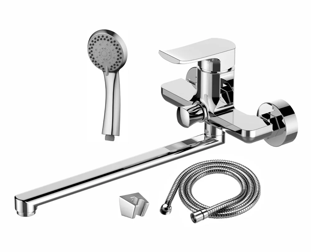 Смеситель для ванны/душа с универсальным изливом и душевым набором Agger Happy A0421100 гармонично дополнит современный интерьер. Дизайнерская форма ручки отличает его от основной массы других смесителей, а ровная поверхность корпуса может быть использована в качестве полочки для средств гигиены. Корпус выполнен из высококачественной латуни, не подверженной коррозии от длительного контакта с водой. Хромированное покрытие, за которым очень просто ухаживать мягкой салфеткой, обеспечивает блеск на долгие годы. Фирменный картридж Agger обеспечит легкое управление напором и температурой воды. Встроенный аэратор экономит воду и, обогащая струю воздухом, делает её мягкой и без брызг. В комплекте душевой набор: ручной душ d10 см (5 режимов), душевой шланг 150 см в металлической оплетке (с защитой от перекручивания), настенный держатель лейки.