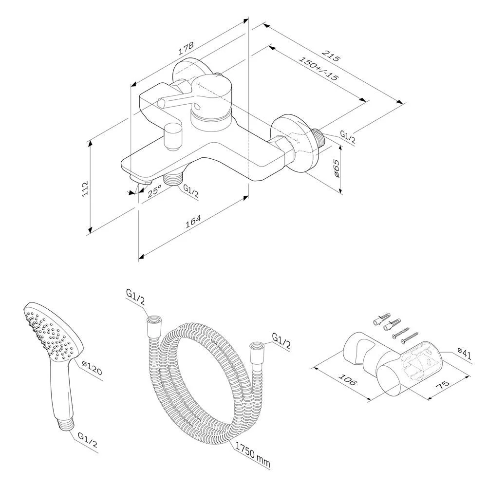 В комплекте душевой набор: стильный ручной душ 120 мм 1 режим настенный держатель с регулировкой угла наклона душевой шланг с защитой от скручив
