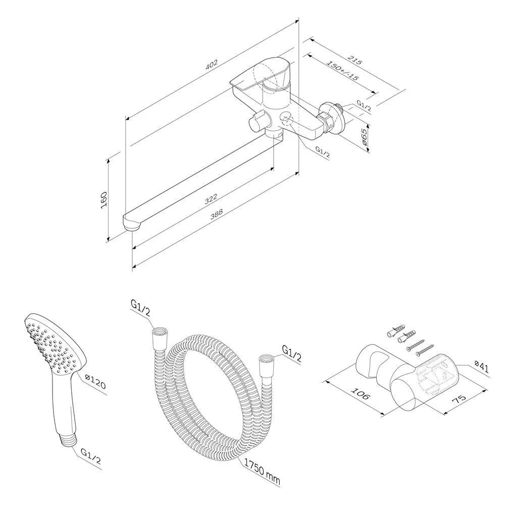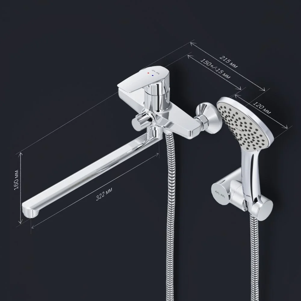В комплекте душевой набор: стильный ручной душ 120 мм 1 режим настенный держатель с регулировкой угла наклона душевой шланг с защитой от скручивания. ""