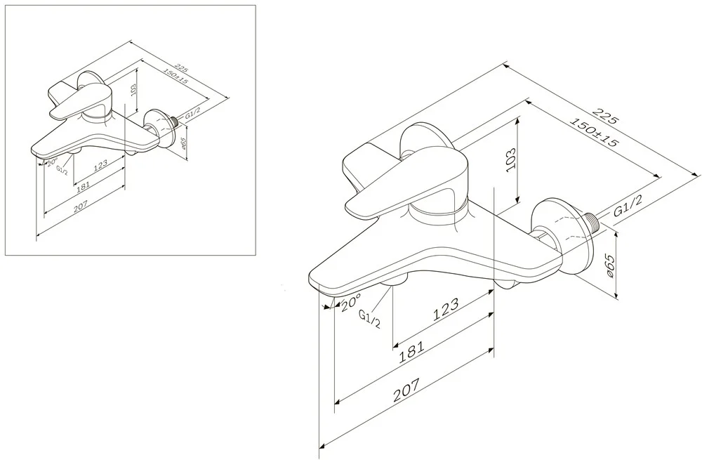 Идеальное сочетание пневматического переключения «душ-ванна» с механическим: 100%-ное срабатывание даже при низком напоре воды.