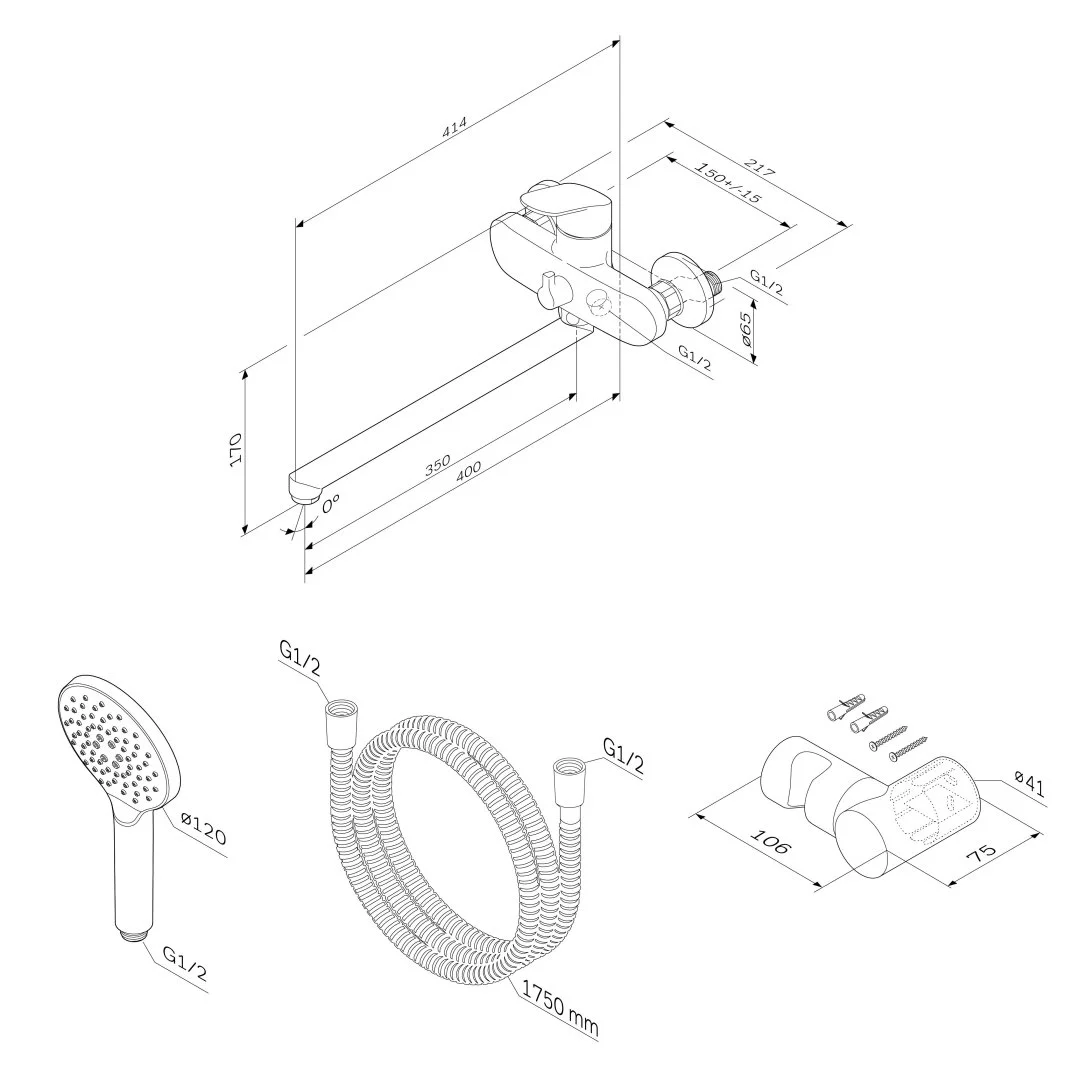 В комплекте душевой набор: стильный ручной душ 120 мм 3 режима настенный держатель с регулировкой угла наклона душевой шланг с защитой от скручивания. ""