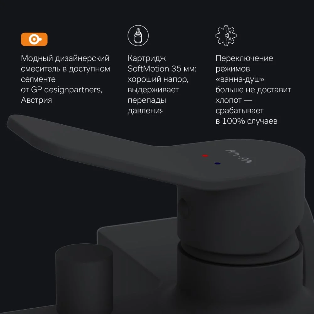 Смеситель X-Joy оборудован специально спроектированным для AM.PM керамическим картриджем SoftMotion 35 мм который обеспечивает оптимальную регулировку температуры а также позволяет выдерживать любые перепады давления.