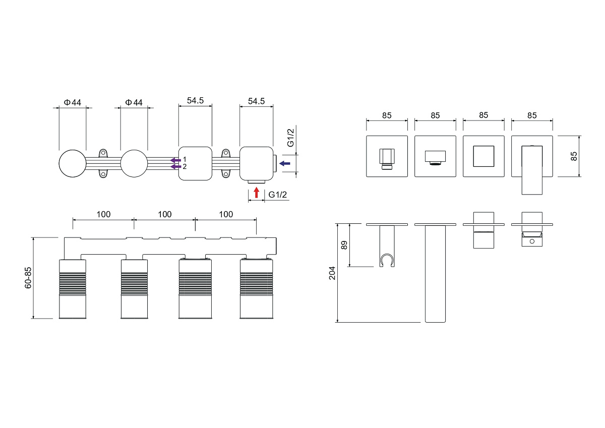 Смеситель для ванны Aquatek Либра AQ1644MB встраиваемый, черный матовый