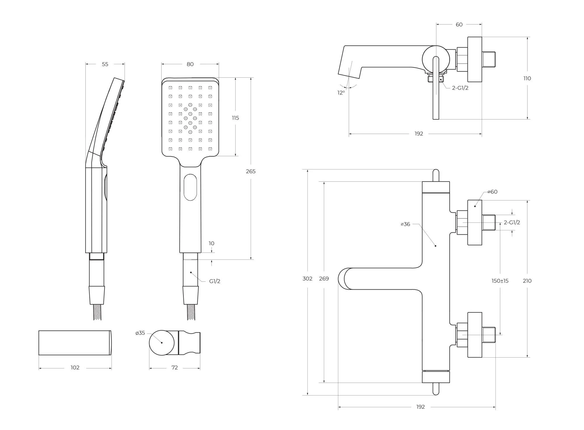 аэратор, эксцентрики, душевой шланг, душевая лейка, держатель для душа