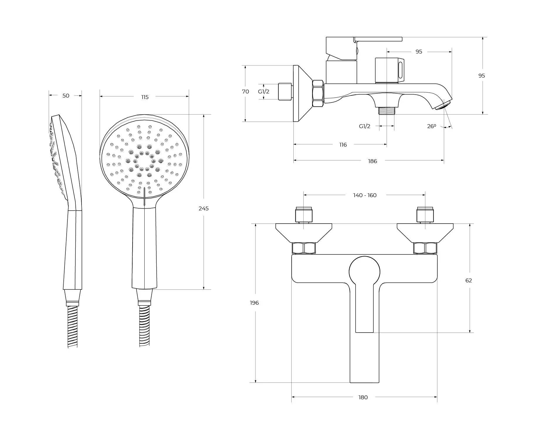 душевая лейка, душевой шланг, держатель душевой лейки