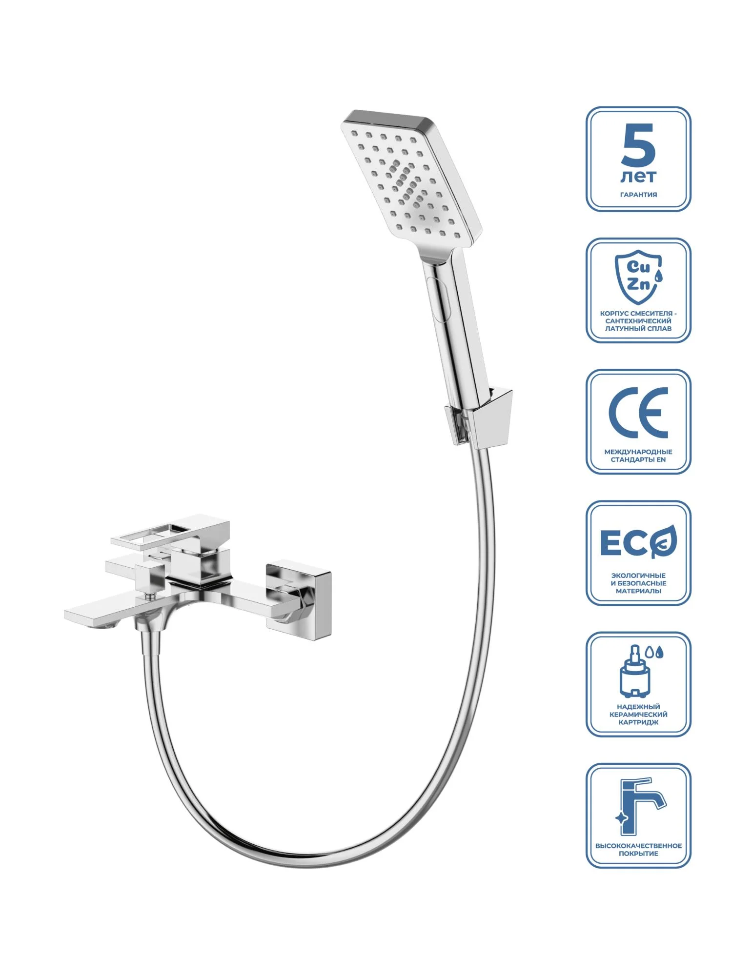 аэратор, переключатель потоков, эксцентрики, держатель душевой лейки, душевая лейка, душевой шланг