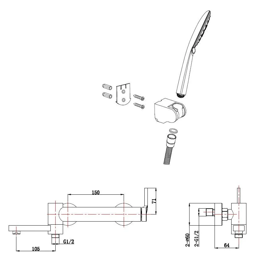 аэратор, переключатель потоков, эксцентрики, держатель ручного душа, душевая лейка, душевой шланг