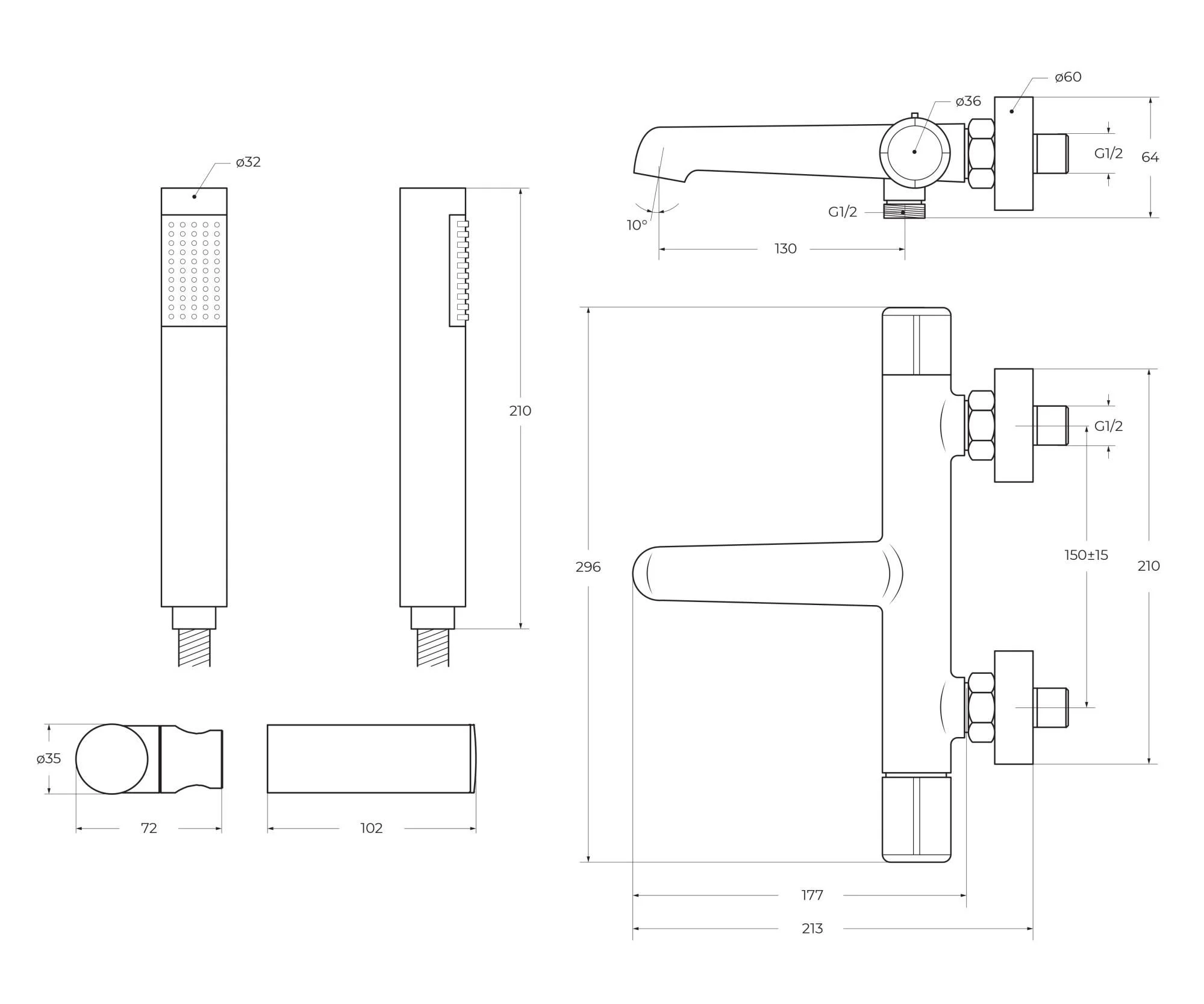 аэратор, эксцентрики, душевой шланг, душевая лейка, держатель для душа