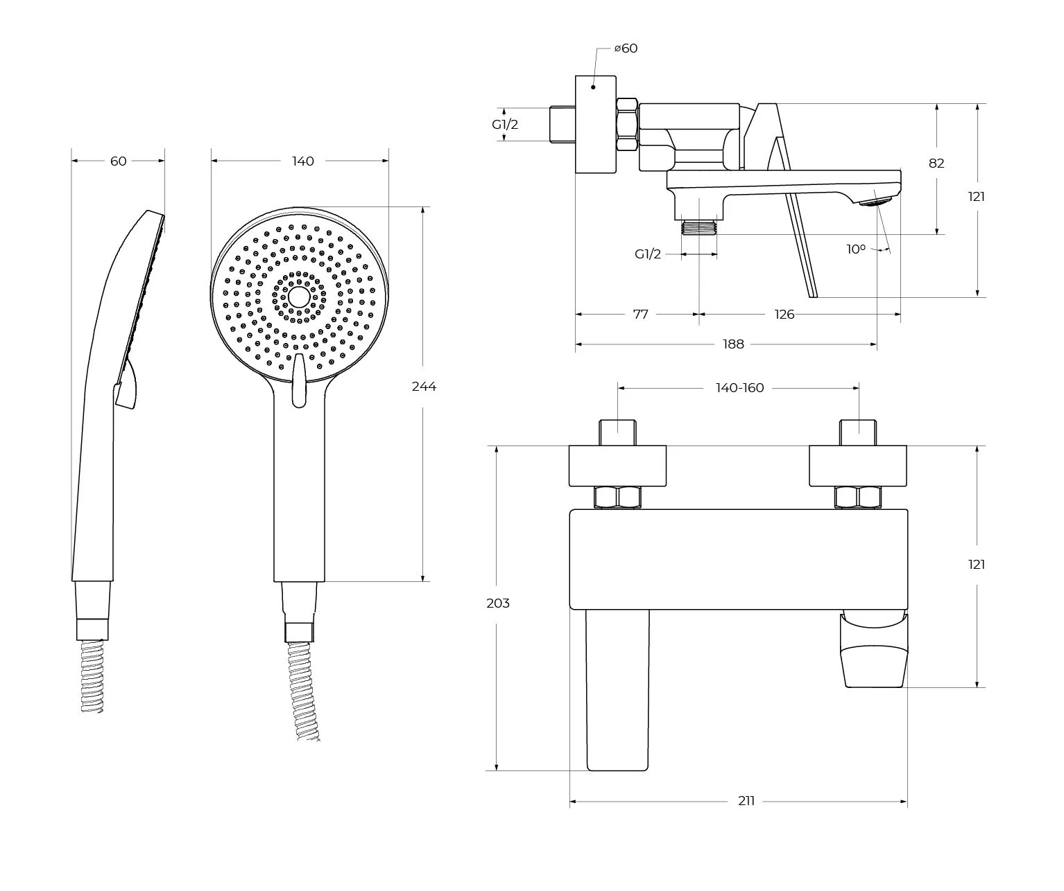 Душевая лейка, душевой шланг, держатель душевой лейки